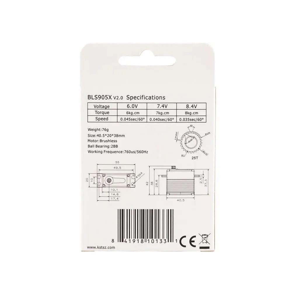 The servo KST BLS905X has the following advantages compared with the BLS805X: The brushless motor and the electronics are more powerful. Because of these facts and in connection with high quality ball bearings the BLS905X is a class higher than the BLS805X.